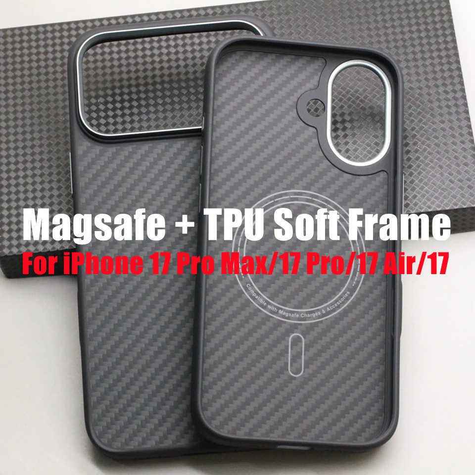 iPhone 17 Series Carbon Fiber MaSafe Case Kevlar Aramid Soft TPU Frame